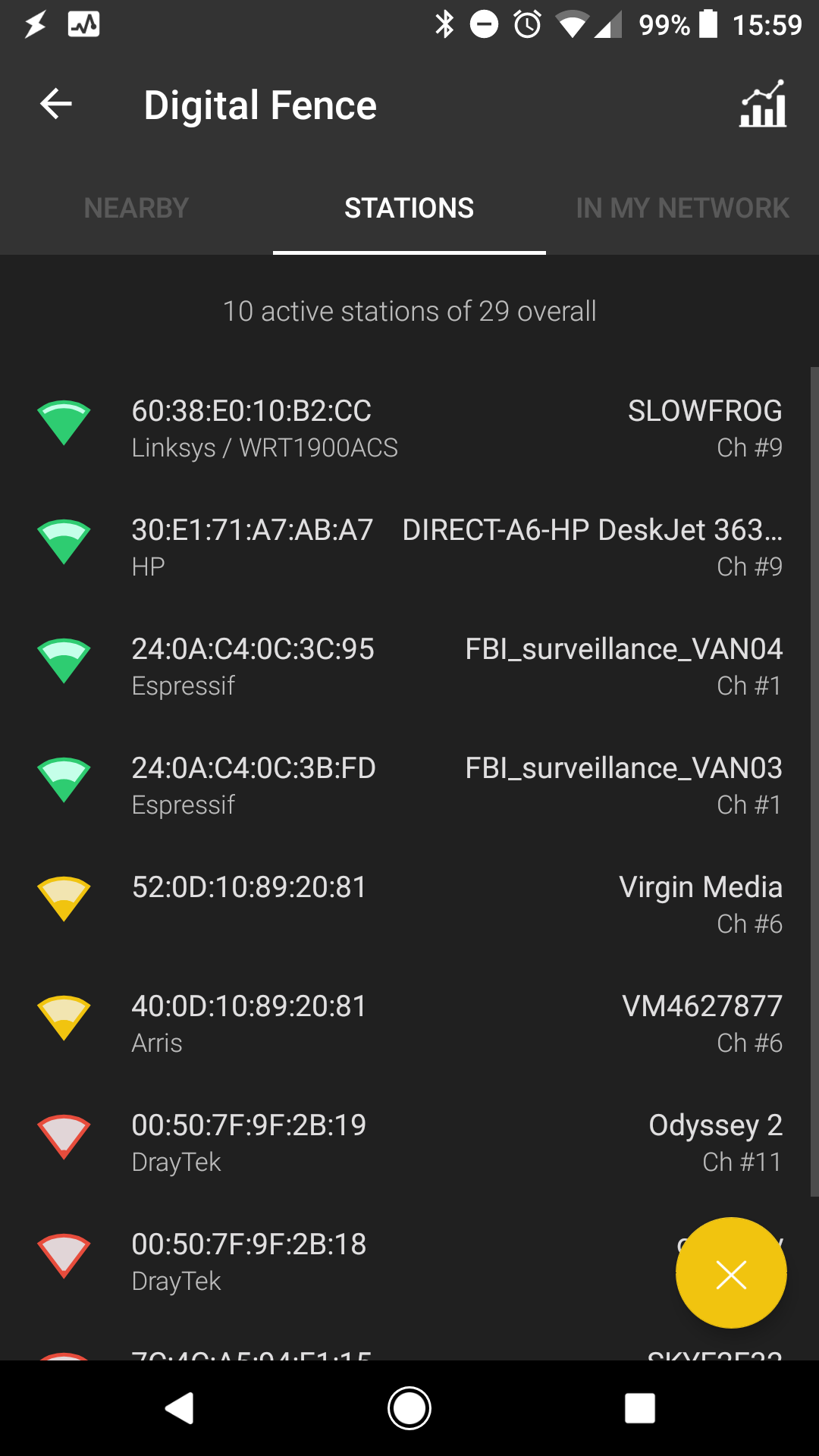 The same set of information is available from the Fing app, however, only using Fingbox this information is available to you outside of your local network. You can get the MAC addresses, view logs, block internet or simply check what devices are online. You will also get a notification (email/phone notification) when a new device is connected or you have set up a notification for a particular device.