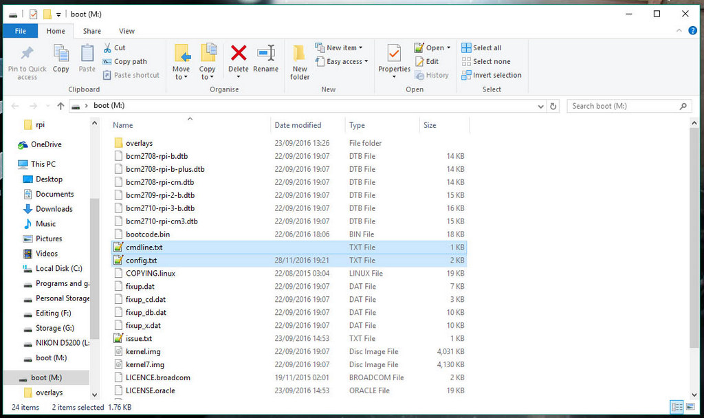 Install the Raspbian image on the SD-card, and open it on the PC. You will need to open 2 files.