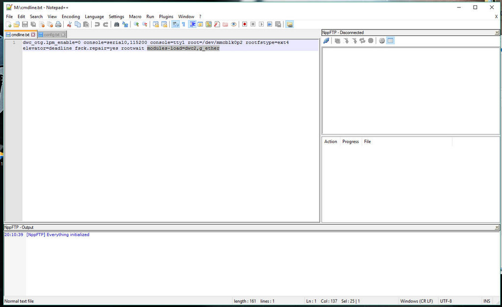 Add the following text after rootwait (leave a space, keep all in a single line):modules-load=dwc2,g_ether