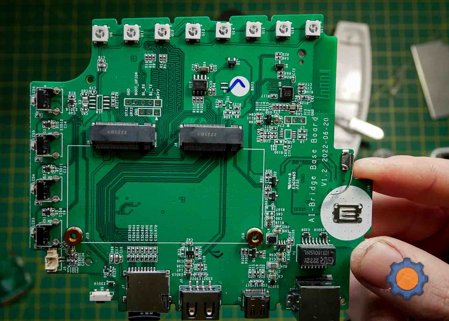 The side panel takes more finesse to open, and I work the prying tools around the edge to expose the PCB. What I haven’t anticipated is the inclusion of a compute module in removable sockets. Looking at the module enclosed from both sides in metal shielding and the fact some of the traces are wobbly (a sign of impedance matching), the cage shields the computing elements from interfering with wireless components.