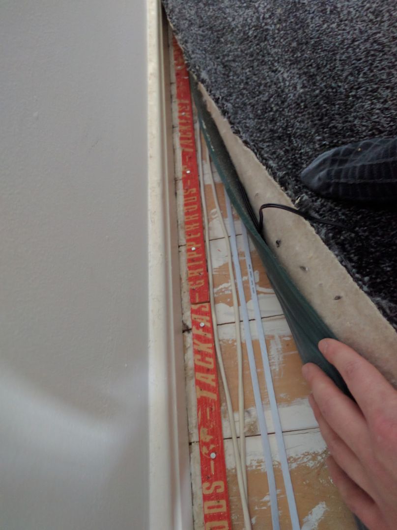 You will be drilling through 2 plaster boards unless this is a support wall. Aim near the skirting board, if you can remove one – it’s even better. If the wall contains power sockets, drill below the level of the socket, if your wires are done well, it will never go diagonally. Do take care. This took me about 30 seconds. Mostly because I used a flashlight to check for wires once I pierced the plasterboard.