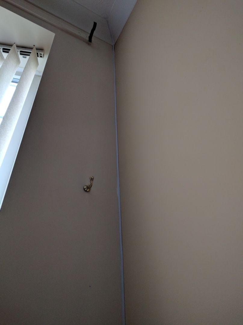 Thanks to my neighbour – I got a proper drill and bits for that. Chances are you will be up against a plasterboard and some wooden boards. If you are unlucky – you will need a masonry bit and a lot of patience. Aim for the corner if possible. It’s the easiest way to hide a cable in a plain sight. If possible, don’t drill in the exact corner. You are more likely to hit a beam. It’s very unlikely you will hit any wires or pipes. It took me about 5 sec to drill through it. Do it from the bottom floor.