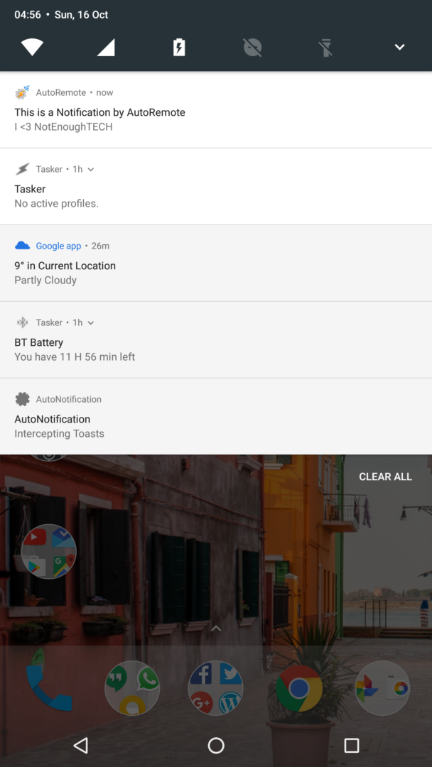 This notification will be displayed as a message in the status bar. These are more robust, as you can configure every aspect of the regular notification like title, text, URL etc. You can also send files and decide how the message would behave when interacting with it. Another useful feature is actions that can be executed when notification is received or interacted with. These can be used to provide the instant feedback or activate additional Tasker profiles on the receiving device.