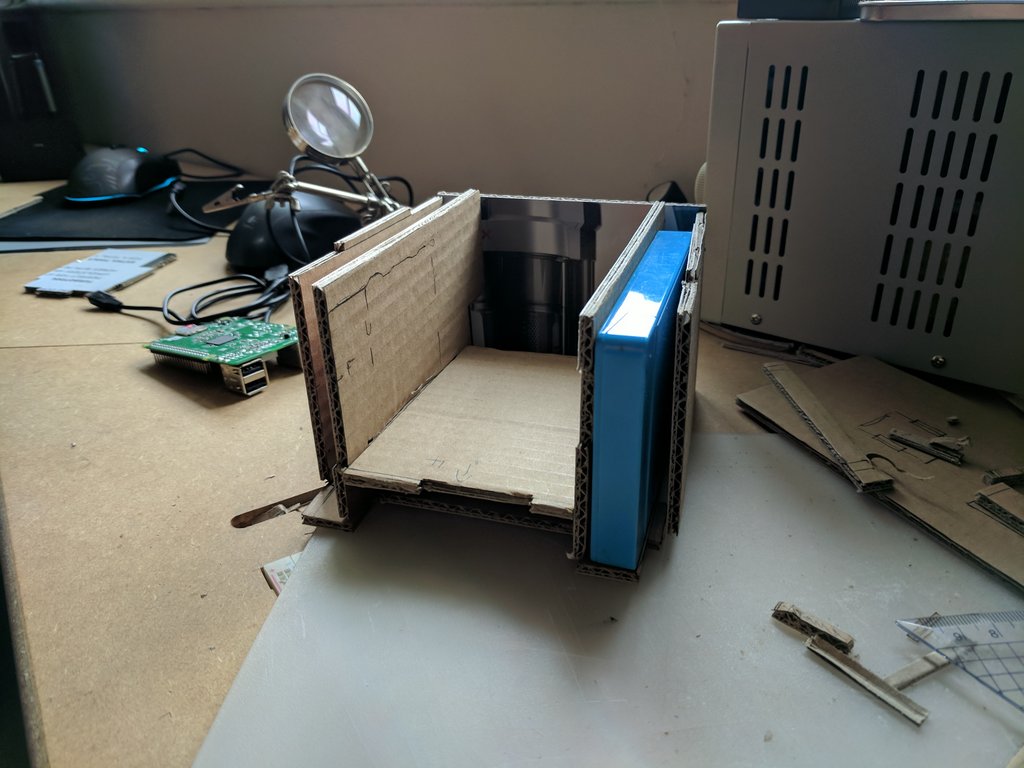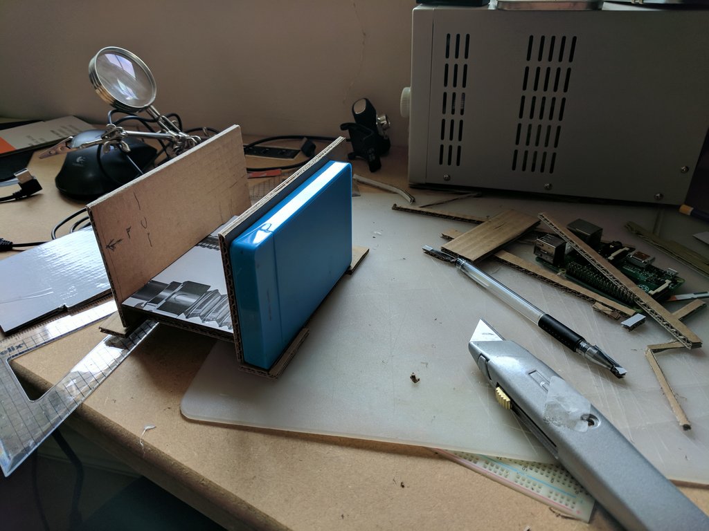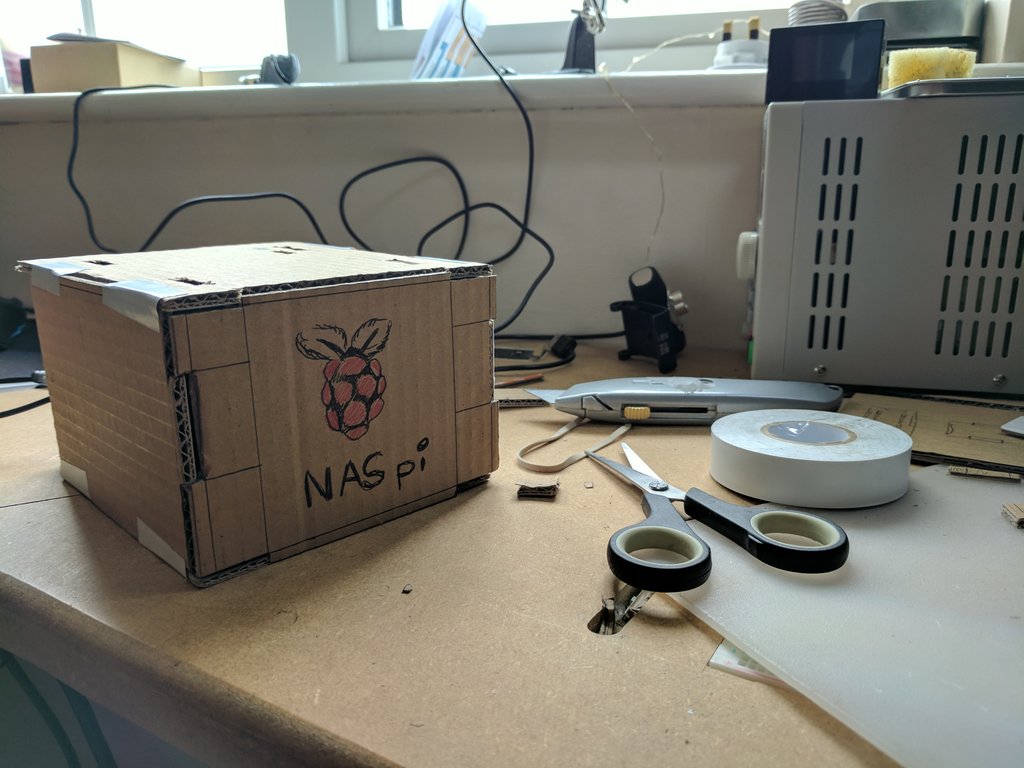 I have (hopefully) enough perspex to complete the build. Not enough to make any errors. To avoid this I decided to handcraft a mock-up box for the NAS-pi. If you are confused about what it does, and how it performs you can read more about it here and here. A short breakdown: