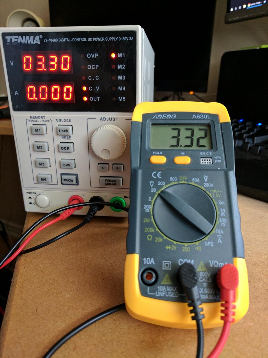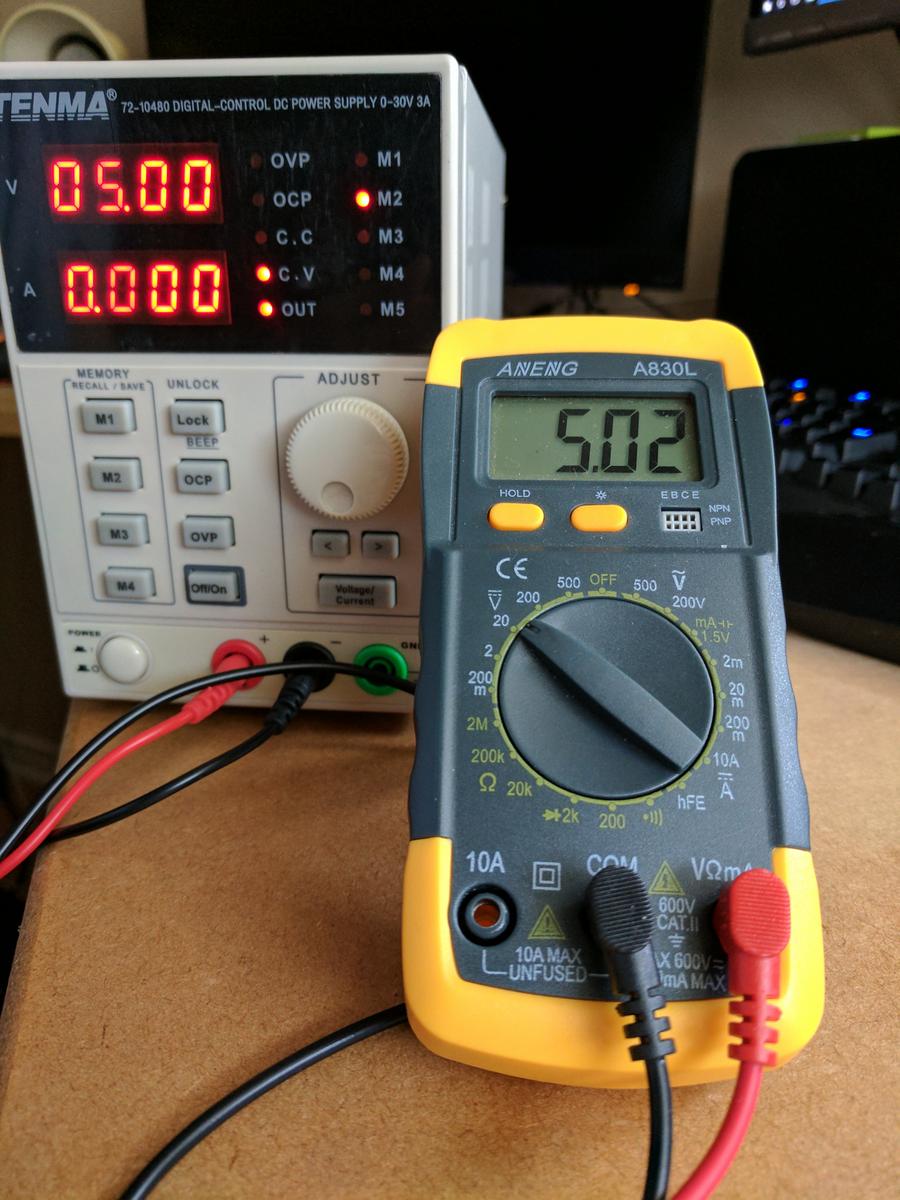 I took my equally budget multimeter and I quickly confirmed some readings. These are mostly on point. The 3,3V and 5V were the most interesting to me as I have other reference points. I’m glad to report that readings were 3.32V and 5.02V respectively.