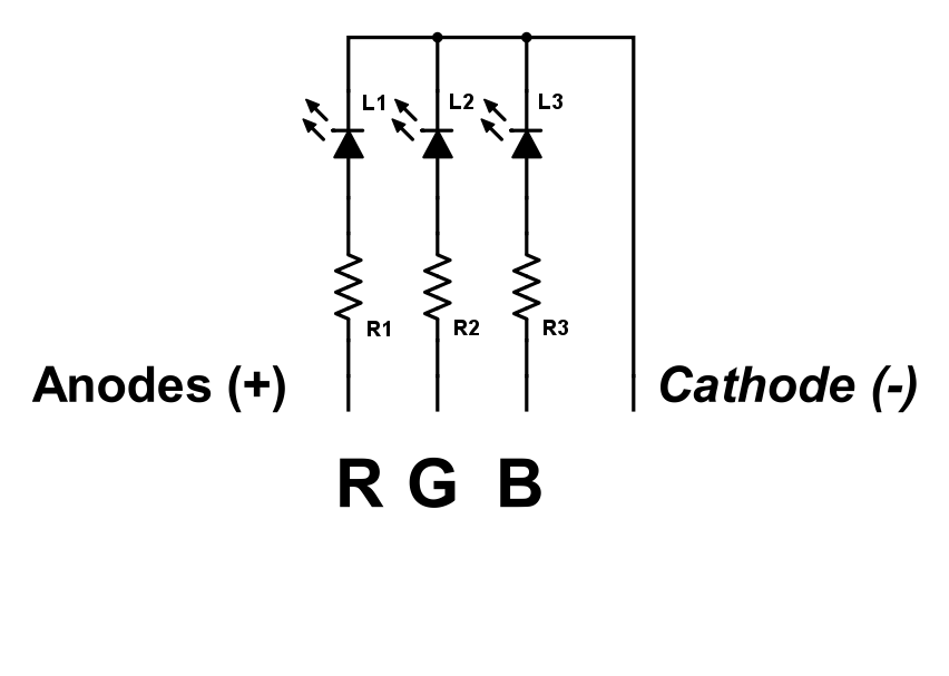 Finally, we get a break here. These are well labeled, and PCB is put together in a coherent manner. The basic design is simple, we get common cathode and 3 anodes to drive the current in. (LEDs with common anodes are also available). Each corresponds to specific colour value Red, Green, Blue. My modules share common cathode, (marked as GND). Both designs require you to regulate the resistors linked to the each RGB channel, so unless you aim for a specific colour a potentiometer would be a great touch.