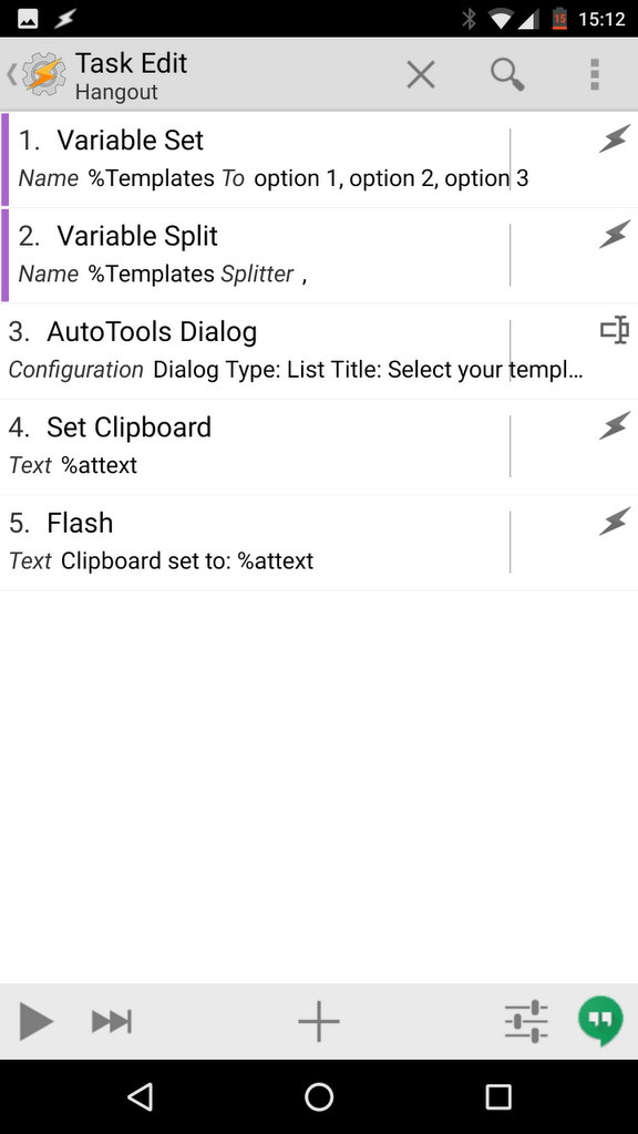 I know I seem to love the AutoTools Dialog action, but it is one of the most useful actions in my opinion. This time we will set the clipboard with a quick response template. Once the selection is made, you can paste your text message or reply in seconds. No need for typing.