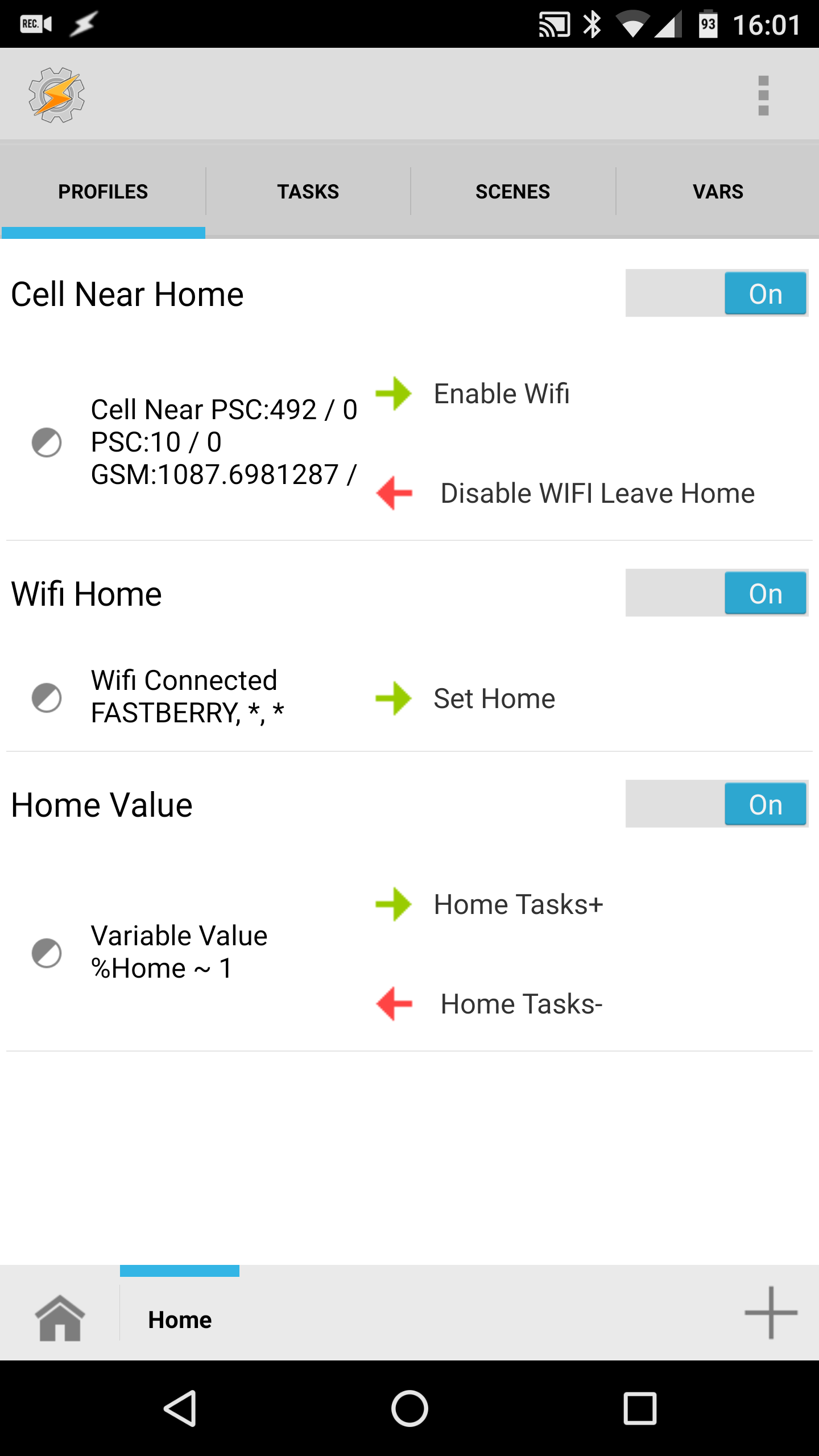 The main idea behind this profile is to integrate the WIFI and Cell Near condition together. This profile perhaps may not be perfect for all of you. The ‘cell near’ can be tricky to work within the countryside, or if your work/school is close, but should give you an idea of how to start your perfect home profile.