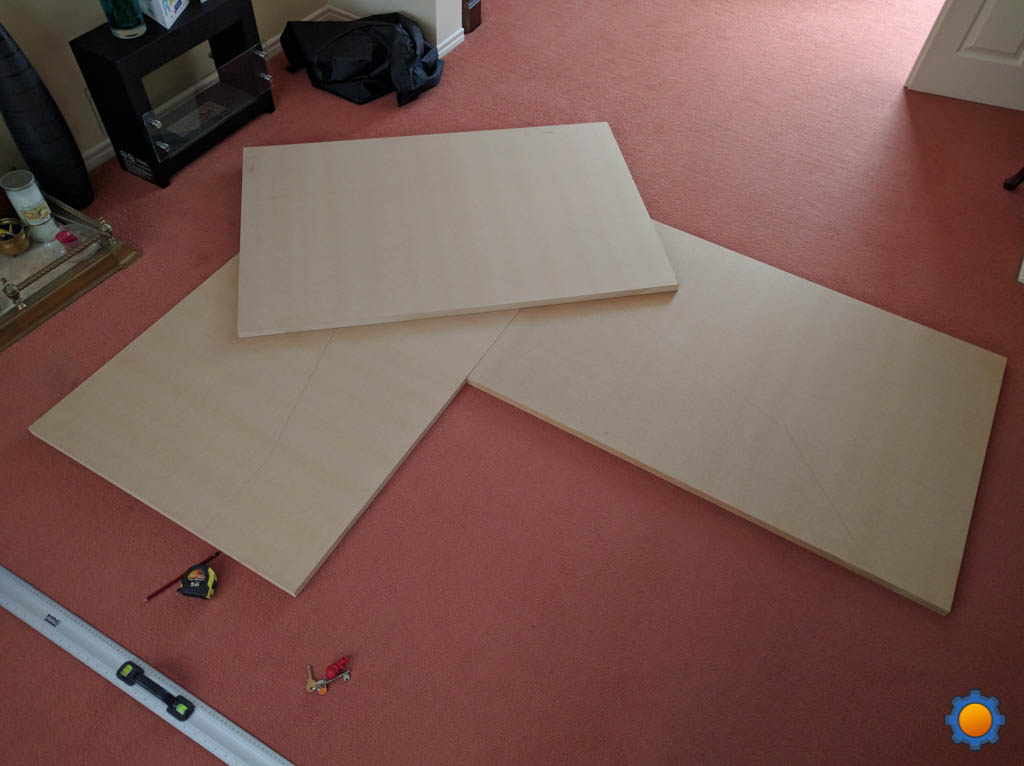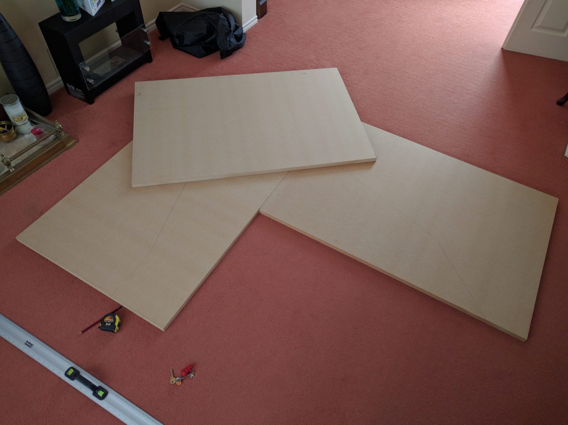 It’s crucial to get the measurements right. It saves you time and money. My working area would be 190cm x 160, and booth of the car could fit the 80xm x 130cm max. I have ended up with 3 boards roughly 80cm x 120cm. I wasn’t sure what design I will go for. I fancied curves and stylish finish, but I have MDF and a jigsaw.