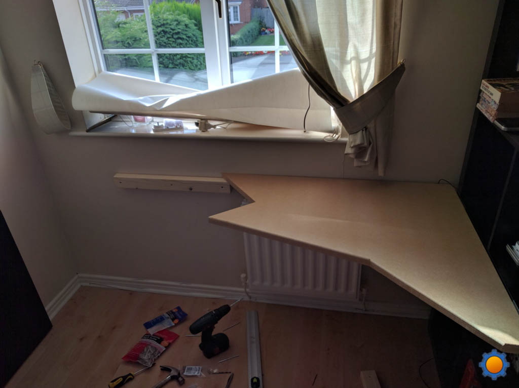 I didn’t have a budget, but my goal was to spend as little as possible. I became an owner of an MDF 2400mm x 1200mm x 25mm board for a £35 and a piece of a straight block of wood for another £6. I spend a few more pounds on screws and L-shapes brackets to keep things in place. As you can see, the general plan was to keep things cheaper than a new desk.